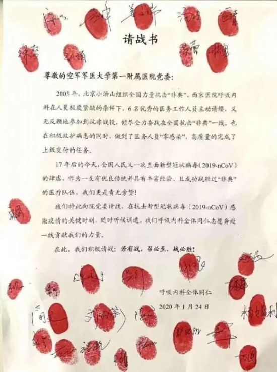 信仰坚定,坚决听党指挥。军人的忠诚体现在炮火纷飞,枪林弹雨的战争岁月,更体现在风起云涌、守护岁月静好的和平年代。肺炎疫情的发生,是军人在和平时期面对的一次特殊“战争”。党中央一声令下,军队医院医务人员主动请战!那一封封按着红手印的请战书,感动了华夏,温暖了寒冬,成为战疫特殊时期一帧帧美丽的画面。有他们在,千千万万的你我放心、安心、舒心。
