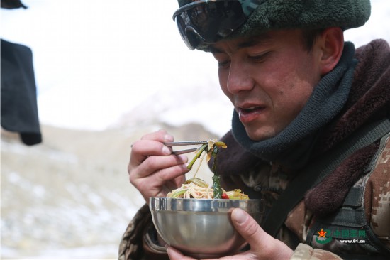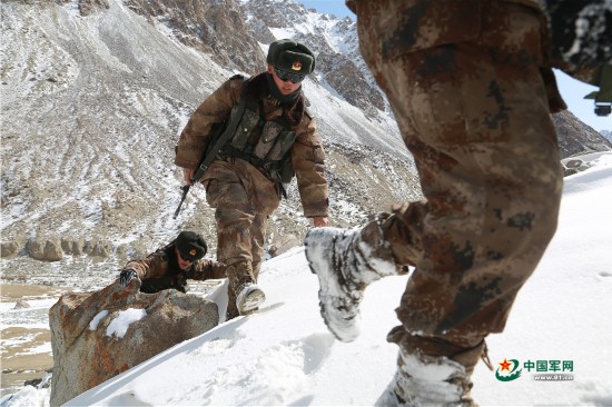 3月11日一大早,驻守在这里的新疆军区某边防团卡拉其古边防连官兵从营区出发,向海拔4900多米的点位挺进。