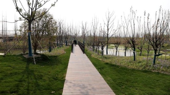 随后,记者又来到位于京杭运河和扬州港之间的运河河口公园,该公园建设和京杭运河整治工程同步进行,实施总面积约15万平方米,目前已全面建成,并打造了入口景观区、林滩涵养区等多个亲水区域。行走其间,落羽杉、池杉等湿地植被错落有致,亲水步道穿插其间,营造出自然舒心的江边湿地景观。