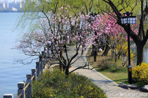 无论世事如何,春天总会准时赴约,岸边枝头的那抹绿,那抹红,也是一日盖过一日。