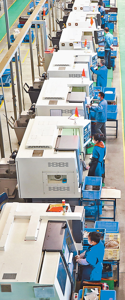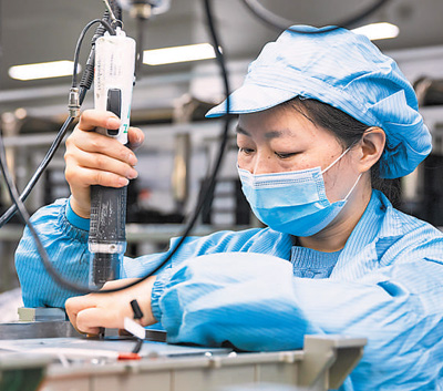 4月6日,在武汉临空产业园长江光电生产线上,工人们正在紧张工作。