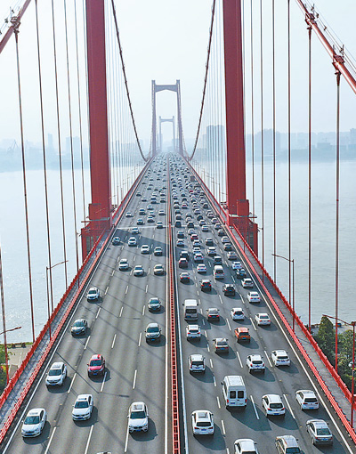 4月8日,武汉市鹦鹉洲长江大桥上车流量回升,城市活力正在恢复。