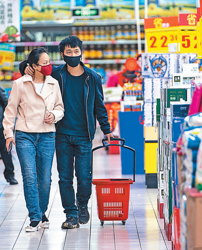 3月24日,市民在武汉汉口一家超市内选购商品。