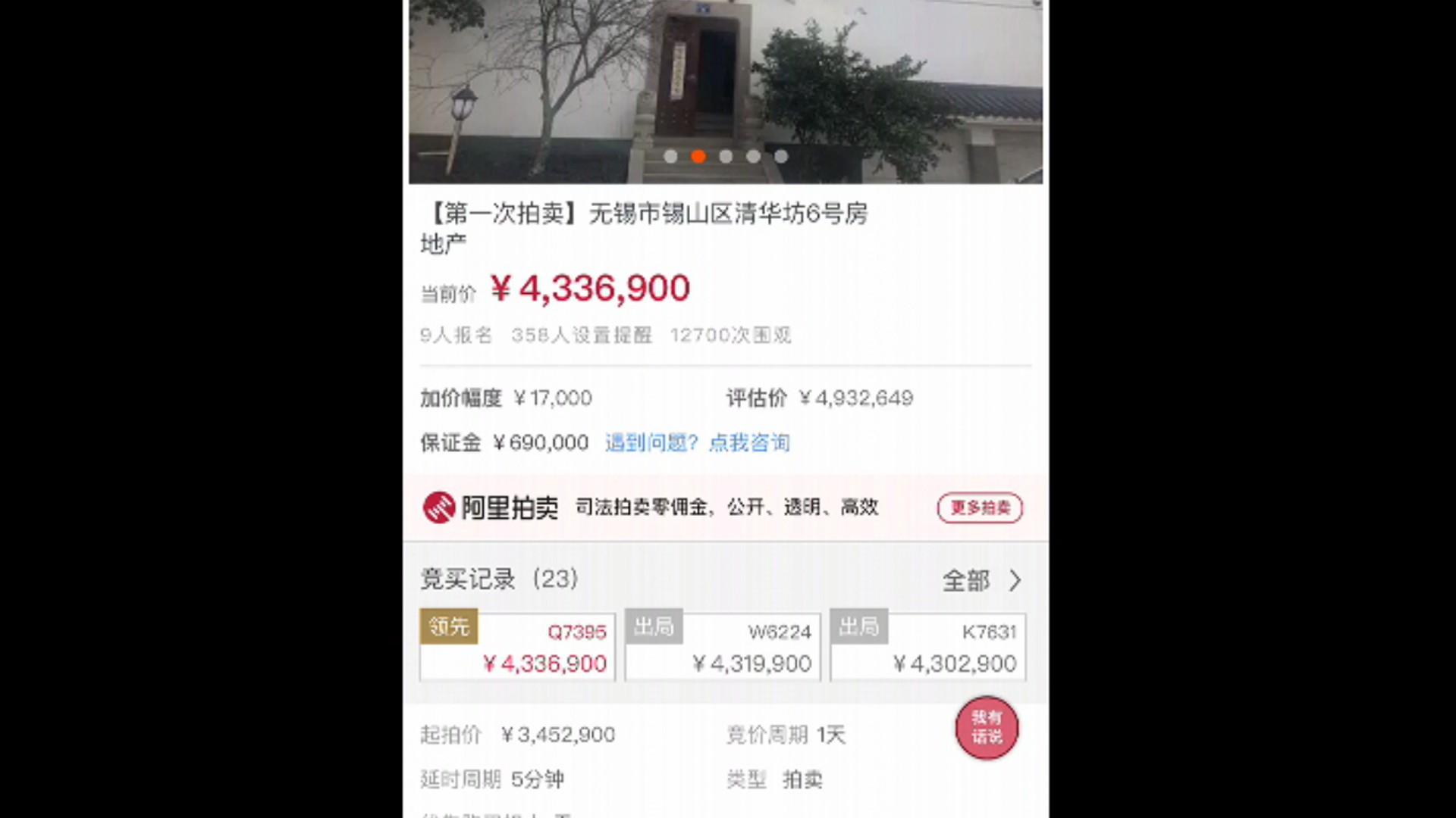 近日,锡山区人民法院淘宝直播间准时上线,执行法官贺豪杰在线带货,正式拍卖从4月16日10:00开始,持续26个小时,一套别墅最终以5,577,900元成交,溢价率61.5%。