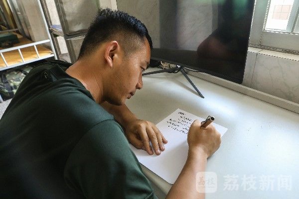 “妈妈,我上个月刚被评为训练猛虎,我已经长大了,虽然今天不能亲手送您一束康乃馨,但通过家书表上我对您的心愿,祝您健康快乐,幸福无边!”写完家书最后一行,上等兵蔡坤栋郑重地封上信封。