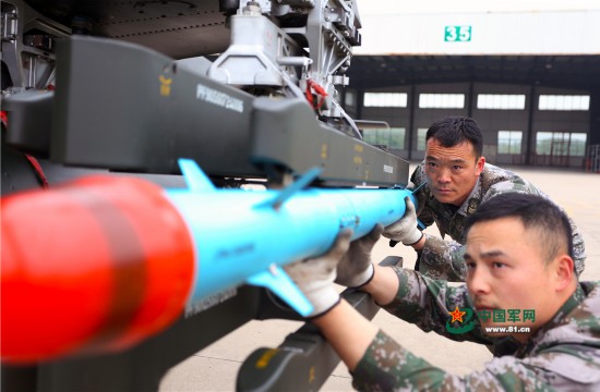 机务人员挂载武器弹药。