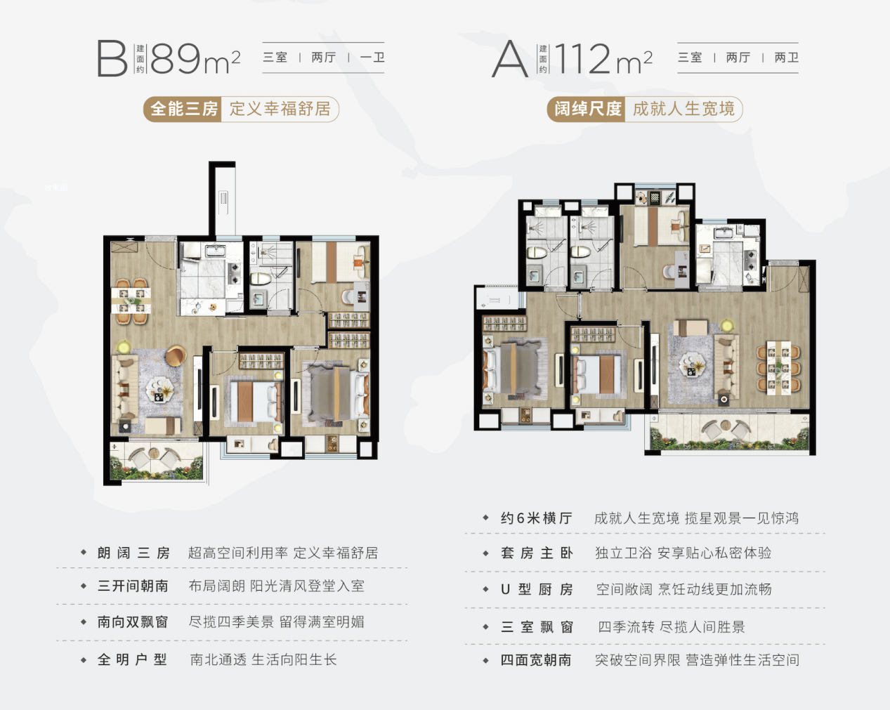 锦绣樾江府建面约89-112m²舒阔全能户型