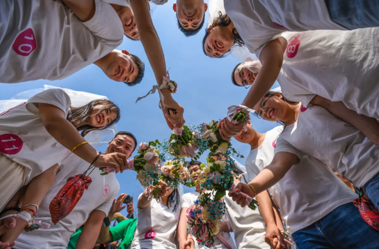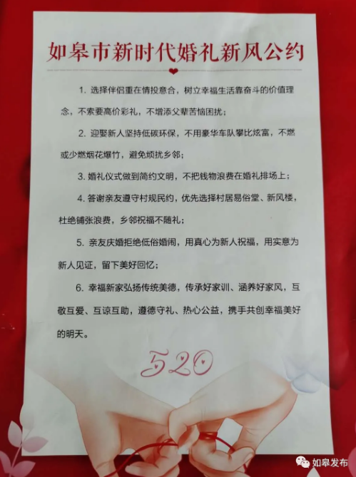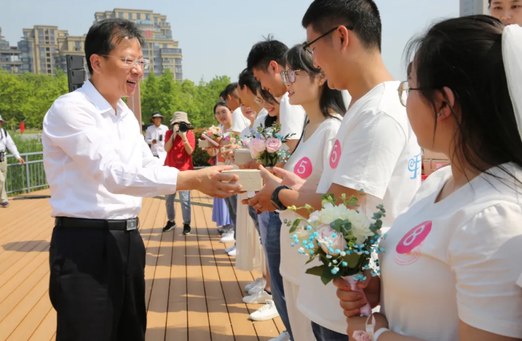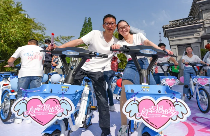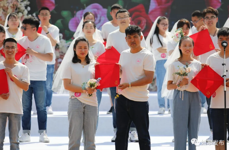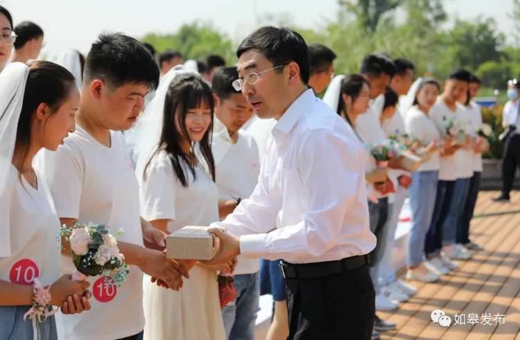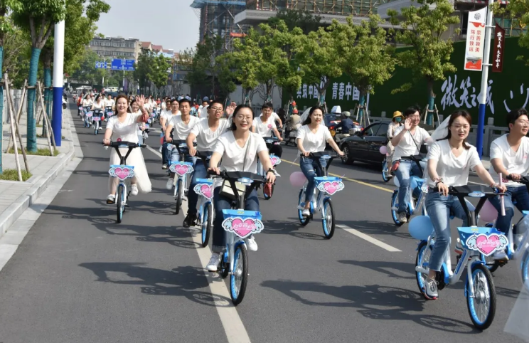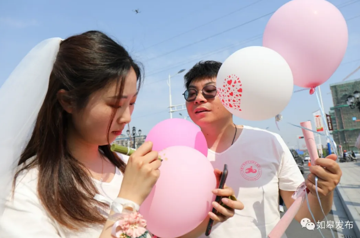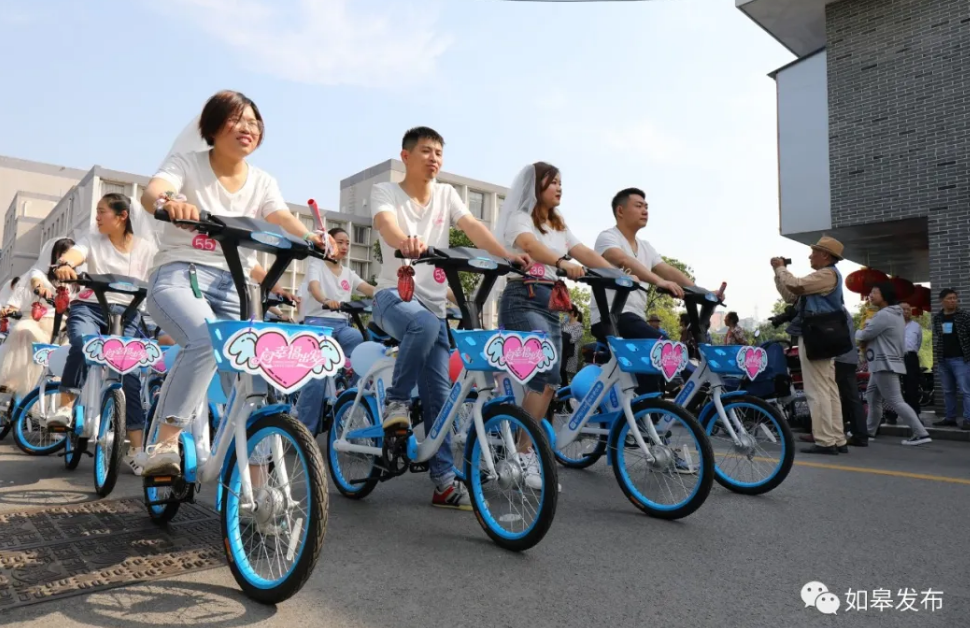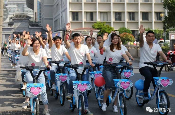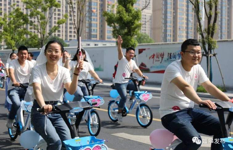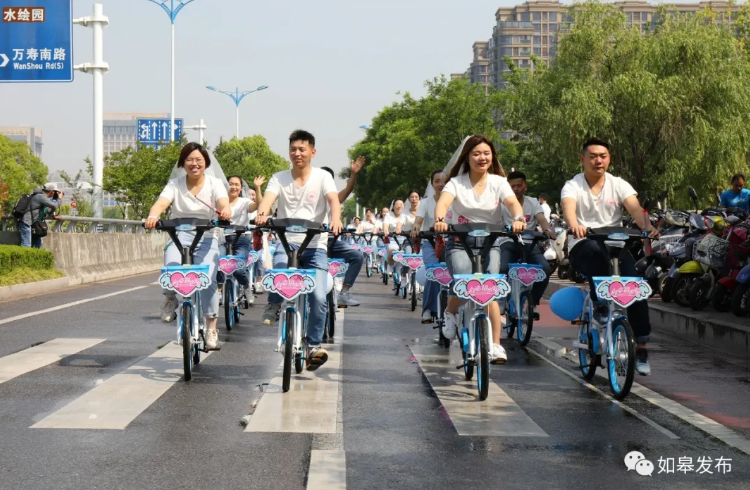 为弘扬传统美德,推动移风易俗,营造节俭文明的婚礼氛围,树立新时代文明新风气,今天上午,“新时代新风尚,新青年新婚礼”如皋市2020年集体婚礼主题实践活动盛大举行。来自不同行业、不同岗位的50对新人从东大街好人桥出发,经过集贤里(状元街),龙游河大桥,来到龙游河生态公园……一路骑行,一路欢笑,一起步入幸福的殿堂。