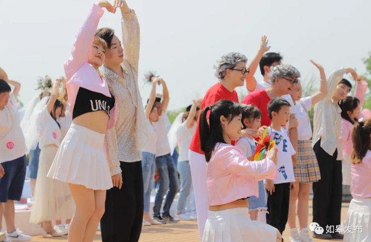 集体婚礼在情景舞蹈《陪你一生》音乐声中完美落幕。