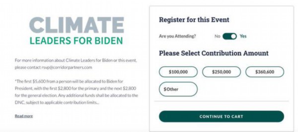 这是拜登迄今的线上活动单场筹款记录。而且,这场线上筹款会并不对外公开,只有受到邀请者才能参加,单是“虚拟入场券”就高达10万美元,参与者基本都是硅谷的超级富豪。具体的说,参加这场活动是热衷环保的硅谷亿万富豪小圈子。拜登在活动上谈到了佛洛依德(George Floyd)之死引发了全美反种族歧视大游行,当然更重要的是,他承诺当选之后会取消特朗普的诸多反环保措施,重新带领美国成为应对气候变化的领导者。