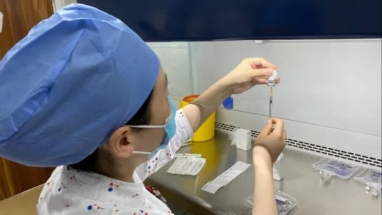 △华山医院Ⅰ期临床研究中心护士正在配制试本次试验用药品