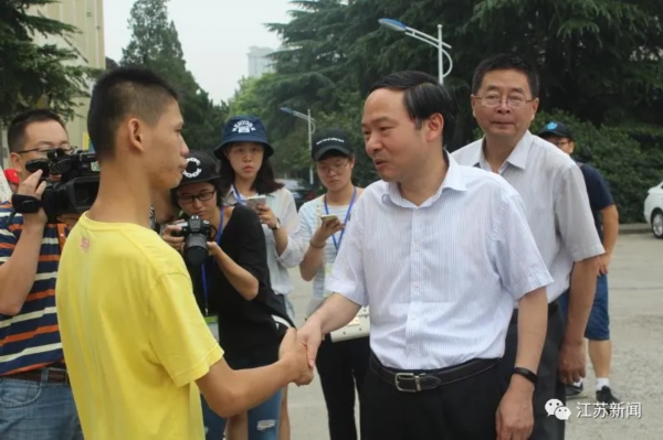 在新生报到现场,扬州大学校长焦新安勉励他好好学习,为自己的梦想奋力拼搏。刘威麟备受鼓舞,立下了考研的誓言。
