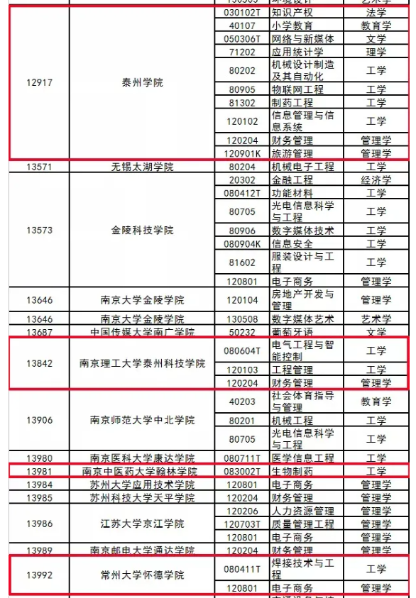 其中,泰州学院新增10个,南京理工大学泰州科技学院新增3个,南京中医药大学翰林学院新增1个,常州大学怀德学院新增2个。