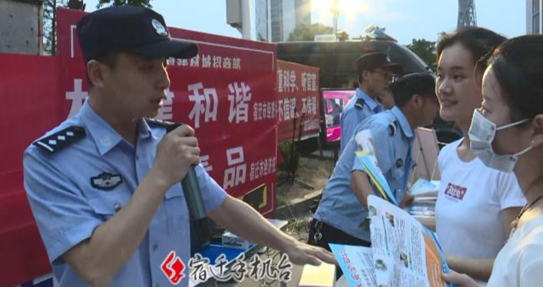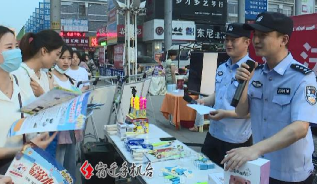 清凉夏日,不少市民晚上都会出来逛夜市。宿迁经开区公安分局的民警们也抓住时机,来到夜市对防诈骗、禁毒和防溺水等安全知识进行宣传。现场还设有有奖问答环节,吸引大家关注。