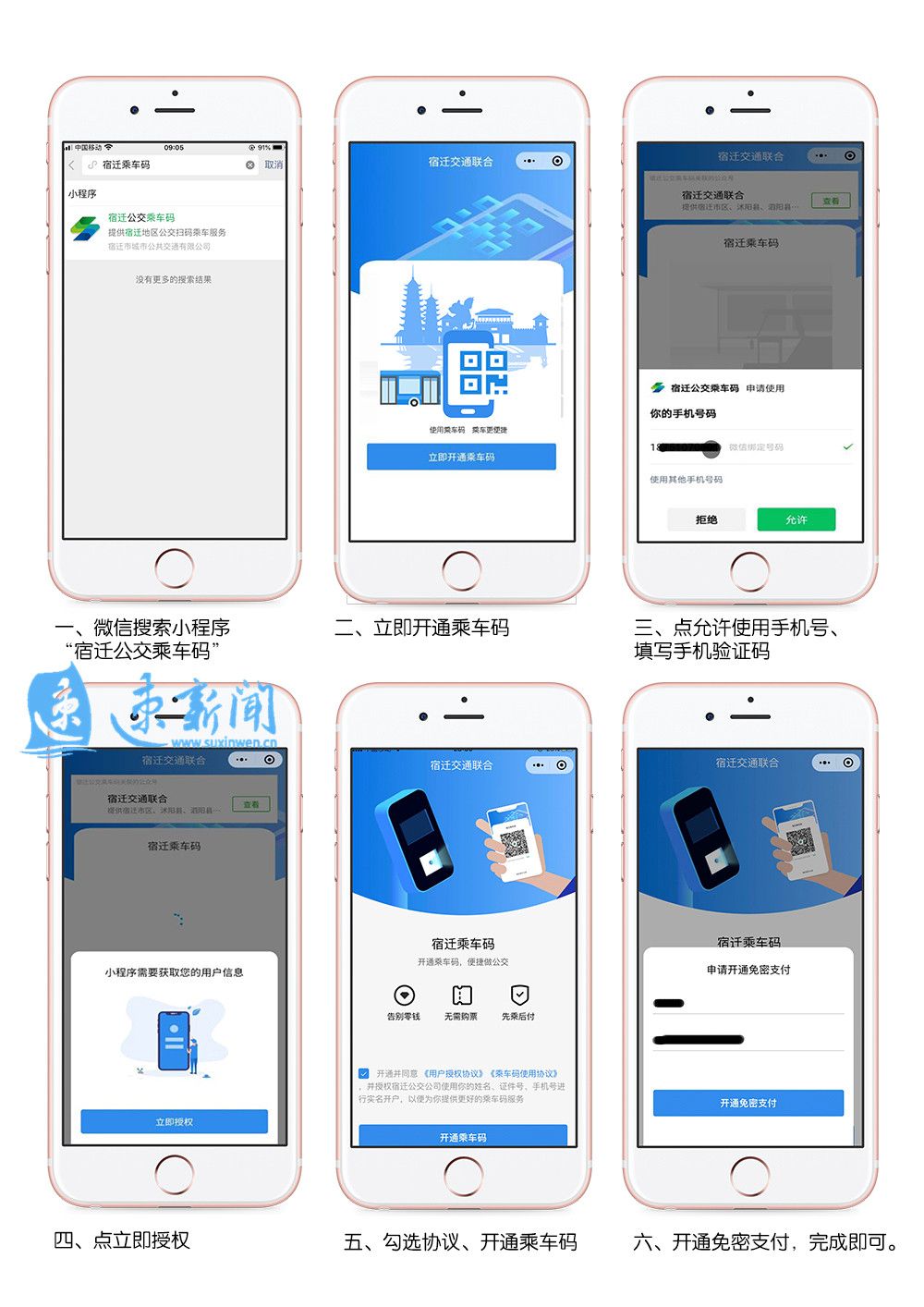 全市已安装交通一卡通扫码设备的城市公交线路均可微信扫码乘车,费用为全票价。用户可在微信小程序免费开通宿迁公交乘车码。开通路径:微信——扫描小程序码或搜索“宿迁公交乘车码”——点击立即开通乘车码——填写相关信息并授权——开通免密支付即可使用。开通完成后,点乘车码右上角按键,选择“添加到桌面”可以把乘车码直接放到手机桌面方便今后随时使用。