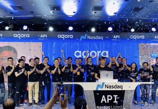 钛媒体6月27日消息,实时互动云服务商声网Agora正式在美国纳斯达克挂牌交易,股票代码API,声网开盘价报45美元,较20美元的发行价暴涨125%,截止收盘,声网股价暴涨152.5%,报50.50美元,市值达50.6亿美元。