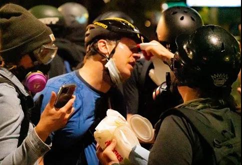 △波特兰抗议者被喷射胡椒喷雾,志愿者对其进行救助