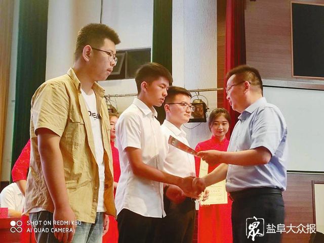 盐城幼儿师范高等专科学校校长姜统华现场向学生发放录取通知书。