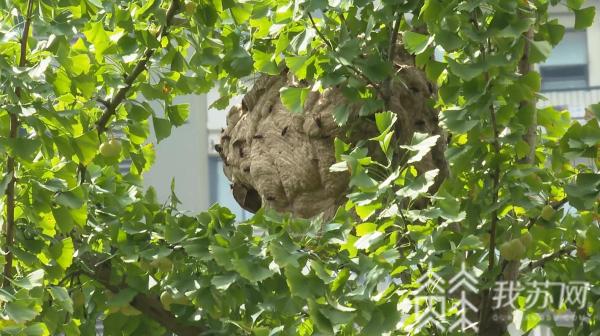 接到报警后, 南京六合公安分局龙袍派出所民警立即赶到现场并联系专业除蜂队伍帮助辖区居民捣毁马蜂窝,工作人员说,这里至少聚集了上万只马蜂,这些马蜂成群飞出来是因为原本的蜂巢中出现了两个蜂王,蜂王闹起了“分家”,所以大批马蜂跟着其中一只蜂王来到了这棵果树。