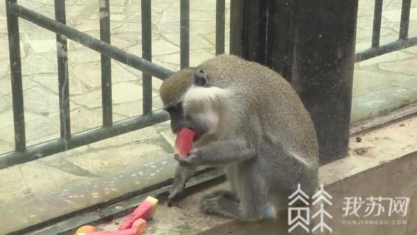 淮安动物园饲养员丁凤莲介绍:“我们先把空调调至26度左右,室内门打开让它自由进出。在它原有的食物上面,添加一些我们自制的冰棍、还有冰镇西瓜、比如绿猴它就喜欢吃冰镇西瓜、结尾狐猴它就喜欢吃我们制作的绿豆汤、还有绿豆冰棍。 ”