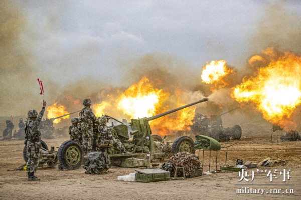 鏖战戈壁,新疆军区某火力团开展多兵种实弹射击演练_央广网