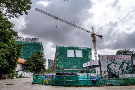 项目2018年12月开工,目前主体建筑在老挝首都万象市中心已初具模样,时时引得路人驻足观望。