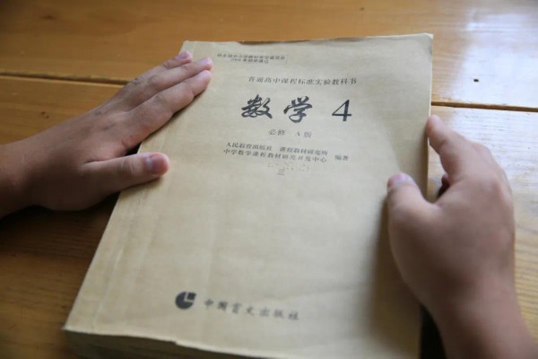 昂子喻抚摸着自己所用的高中数学课本。