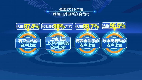 另外,截至2019年底,武陵山片区所在自然村有卫生站的农户比重达到97.4%,上幼儿园、上小学便利的农户比重均达到90%左右,有安全住房的农户比重达到99.7%,饮水无困难的农户比重达到95.5%,片区的“三保障”和饮水安全存量问题已经全部解决。