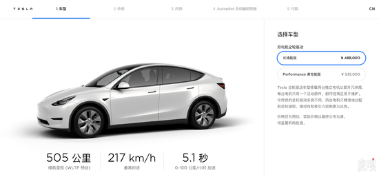8月23日,特斯拉高管此前表示,该公司将在2021年初开始将 “中国制造”的Model Y车型从上海超级工厂的生产线上下线。目前特斯拉中国官网已经悄然上线这款车型的配置器,根据官网信息,国产Model Y将率先推出2款车型,分别是长续航全驱版和Performance高性能版,预售价48.80-53.50万,在实际交付时价格或有所变动。
