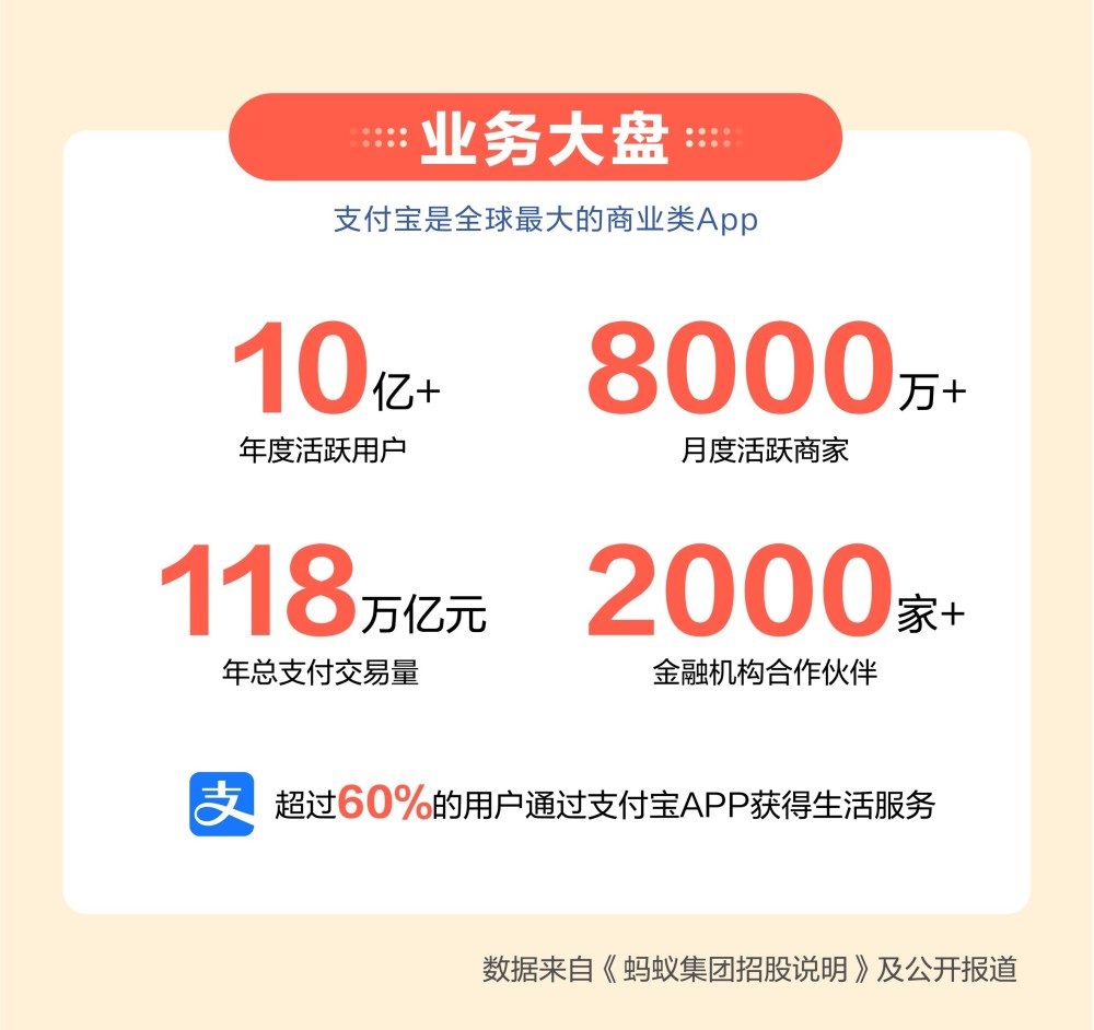 支付领域,招股文件数据显示,目前支付宝连接国内超10亿用户。截止到6月30日的12月内,支付宝平台上完成的总支付交易量为118万亿元。