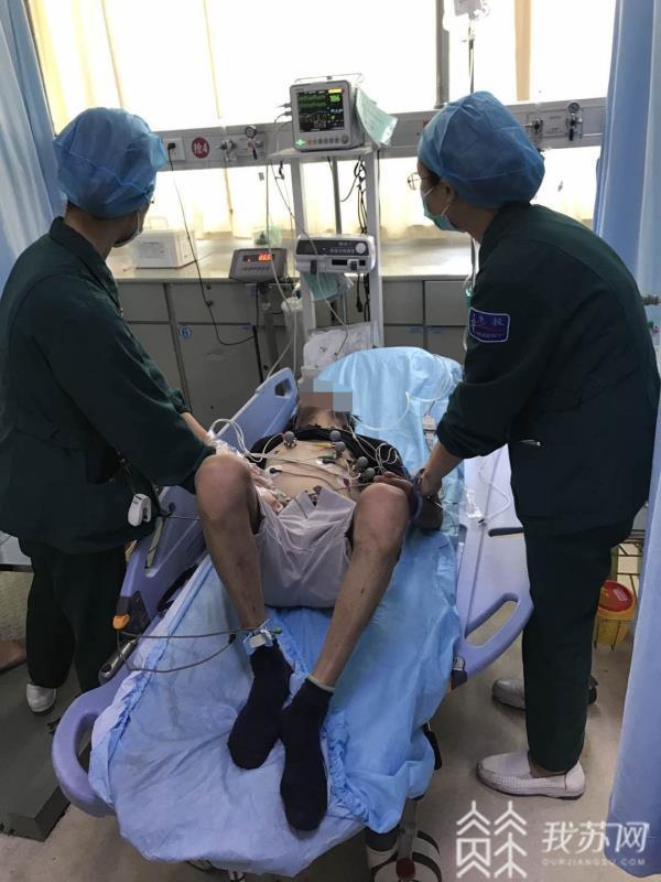 情况紧急,时间就是生命,民警迅速将男子转移到警车,紧急送往距离最近的泰州市第二人民医院。