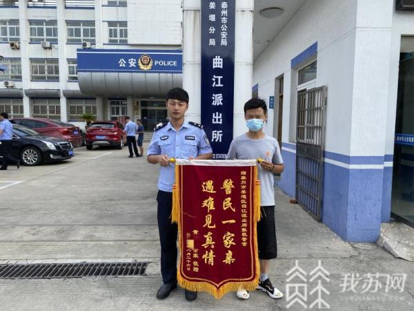 8月26日上午,市民黄先生专程来到泰州市公安局姜堰分局曲江派出所,赠送“警民一家亲 遇难见真情”锦旗,感谢民警对其叔叔黄某的及时救助。