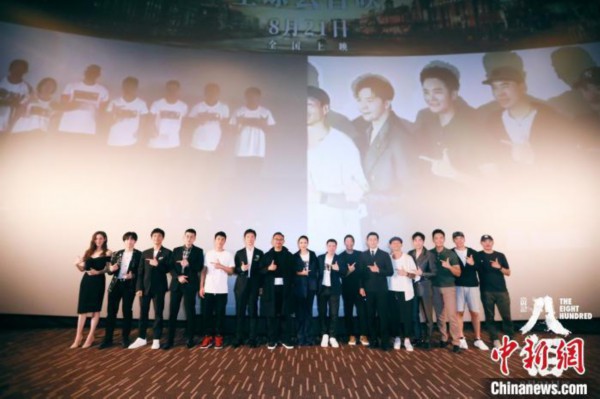 资料图:《八佰》首映礼上主创合影。主办方供图