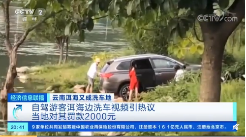 日前,有网友曝光了一段两名游客在大理洱海边洗车的视频,引起广泛关注。视频显示,一辆越野车正停在洱海边上,一男一女正在用洱海湖水对车辆进行清洗。据该游客说,他是自驾到洱海边,觉得洱海水质很好,风景好,可以在这个地方洗洗车。执法人员根据相关法律法规,对违法人员处以2000元罚款,并对涉事夫妻二人进行了批评教育。