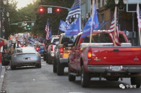 1,当天,在波特兰,大批特朗普的铁杆支持者,组成几百辆卡车的车队,一路星条旗招展,各种呐喊,浩浩荡荡穿过波特兰市中心,为特朗普加油鼓劲。看了视频,确实规模很壮观。