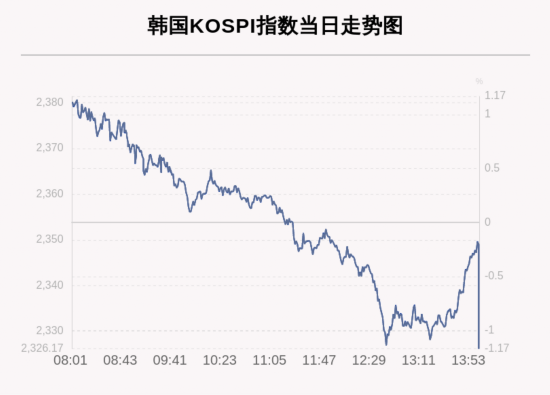 北京时间8月31日14:00,韩国KOSPI指数收盘下跌27.63点,跌幅为1.17%,报2326.17点。