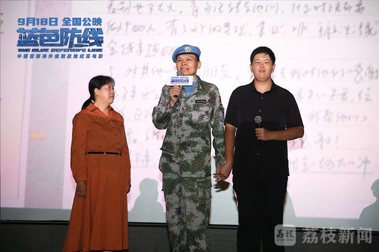 荔枝新闻也受邀参加首映礼并专访了本片主人公中唯一的女兵陈秋岑,她回忆说,在驻地,经常会有子弹和导弹从头顶划过,外出执行任务,时不时就会遇到未知的雷区;在城市里穿行,还要时刻盯防潜在的暗枪。最令她震惊的,是亲耳听到朝夕相处的战友在战斗中牺牲的报道,此前的她一直觉得,维和任务不会爆发大规模武装冲突,但事实告诉她,那里是真实存在的一个残酷战场。