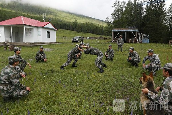 下午在连队班长的带领下,哨所官兵进行了一场激烈的摔跤比赛。在绿草如茵的天然摔跤场地,战士们情绪高涨,呐喊助威的声音划破天际,引来哨所周围的牧民前来加油。