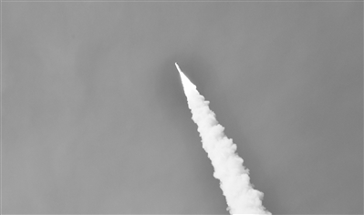 点火升空后的运载火箭飞向卫星预定轨道。孟昊翀 摄