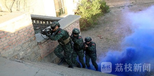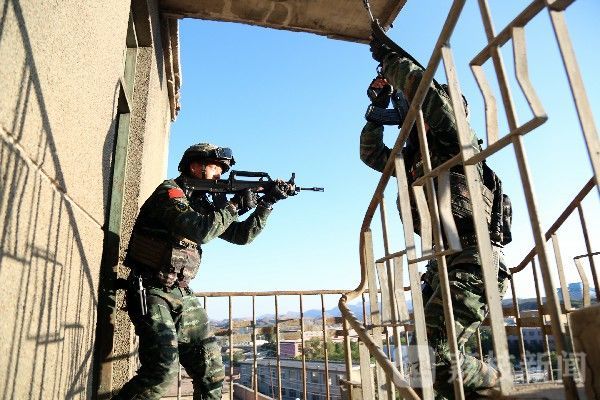 “解救人质,果断处置!”随着指挥员一声令下,一场以楼房内“暴恐分子”劫持人质为背景的反劫持演练正式打响。