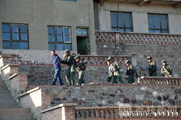 16时演练正式开始,现场情况复杂,“暴恐分子”持有杀伤性武器并劫持人质与我对峙,其具体藏匿在哪个房间无法确定,任务面临巨大挑战。5分钟内不能果断处置,即宣告任务失败。