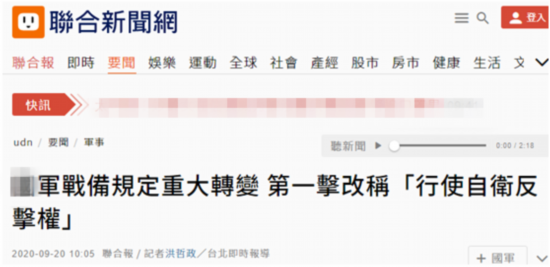 台湾亲绿媒体《自由时报》报道对所谓“自卫反击权”进行了解释。报道称,台湾防务部门发言人史顺文此前曾解释,若台方受到实际威胁,才会评估行使“自卫权”。台军方官员还透露,现今台湾能运用“经常战备时期突发状况处置规定”应处相关威胁,且仍遵照“不开第一枪”的原则,但假使台方战机受到攻击、或解放军已进行攻台前准备,或对台战机有明确的攻击迹象,“空军作战指挥部”指挥官就可以命令飞行员对敌机进行“自卫反击权”。