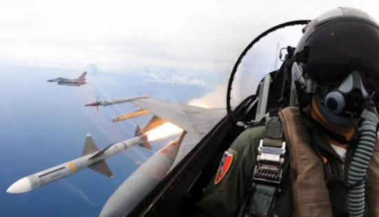 台军机发射导弹瞬间资料图(图片来源:台湾《联合报》)