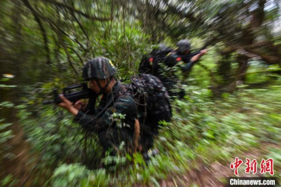 特战队员在进行武装追击。石永明 摄