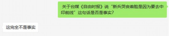 《自由时报》说,视频中解放军战士是刚征召的新兵,半数将被送往中印边境前线,刚告别家人,在车上高唱军歌,情绪激动痛哭。标题更使用“千里送人头”的耸动字眼。
