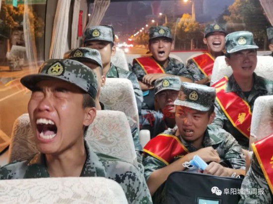 战士泪别父母,在车内哽咽地唱起军歌(图片来源:阜阳城市周报)