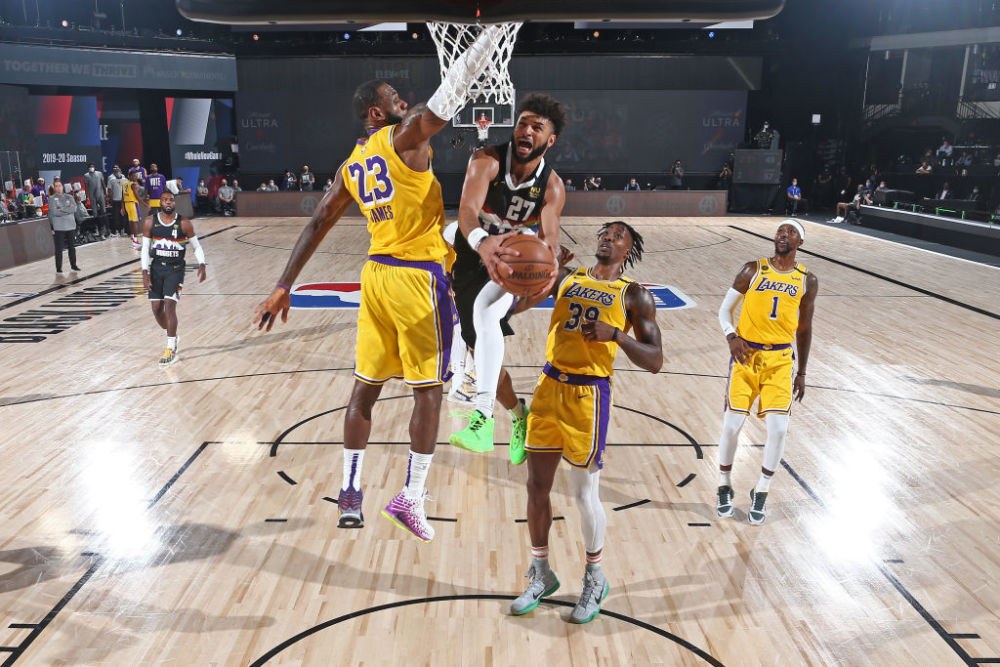 第四节开局掘金先罚中两球,将分差缩小到1分,也让比赛早早就进入了白热化阶段。在比赛还剩3分28秒时,蒙塔-莫里斯打三分得手,掘金102-105也才落后3分。关键时刻朗多中投得手,接着詹姆斯罚中两球,湖人连得4分稳住局势。在穆雷罚中两球后,詹姆斯也罚中两球,湖人111-104还是领先7分,而比赛时间仅剩下59秒。掘金追分乏力,最终他们以108-114落败,在系列赛大比分上处于1-3的落后,让湖人拿到系列赛赛点。