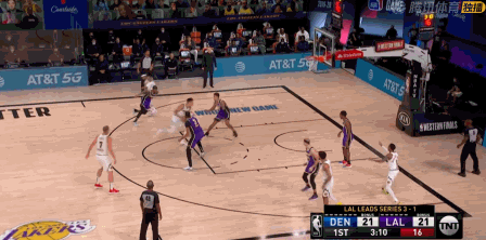 约老师作为NBA最灵活的胖子,开局非常活跃,在进攻端频繁无球跑动,率队12-7开局。但掘金的内线防守实在太 差,浓眉霍华德等人取分就像过清晨的马路一样容易,湖人很快21-18反超。