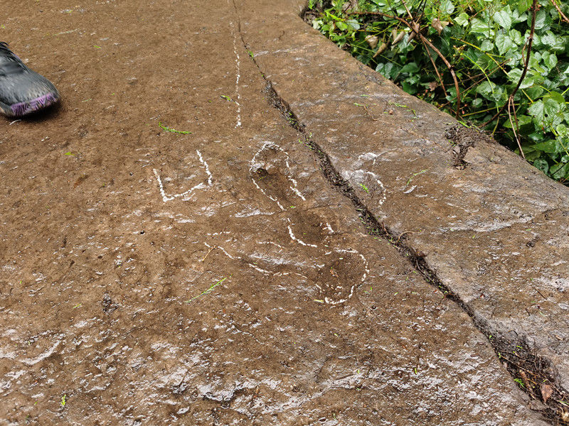 “正好我们国庆要回老家,就带他一起去看了。”10月1日下午,苟女士夫妇带着孩子和外公开始寻找“脚印”。苟女士称,老家外出打工的人越来越多,很多地方都比较荒芜了,石板上有很多荒芜的藤蔓青苔,睿睿的外公还向邻居家借了一把弯刀清理路障。