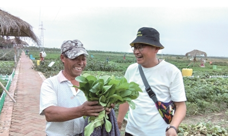 收获了新鲜有机的蔬菜,“一分田”的租客眉开眼笑。 徐报融媒记者 白雪 通讯员 袁增德 摄